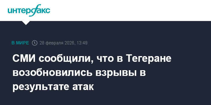 Москва. 28 февраля. INTERFAX.RU - В Тегеране произошли новые взрывы в результате продолжения авиационных ударов по Ирану, передает телеканал Al Jazeera.
