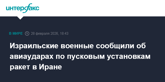 Москва. 28 февраля. INTERFAX.RU - В Армии обороны Израиля (ЦАХАЛ) в субботу сообщили, что приступили к авиаударам по ракетным установкам в Иране.