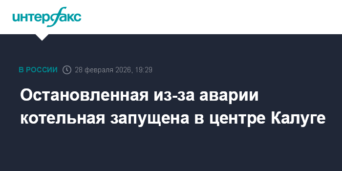 Москва. 28 февраля. INTERFAX.RU - Котельную, остановленную из-за аварии на теплосети, запустили в центре Калуги на улице Вооружённого Восстания, сообщила администрация города.