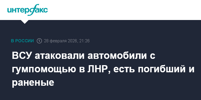 Москва. 28 февраля. INTERFAX.RU - ВСУ атаковали гражданские автомобили, доставившие гуманитарную помощь в Марковский муниципальный округ ЛНР, погиб волонтер, есть раненые, сообщил глава ЛНР Леонид Пасечник.