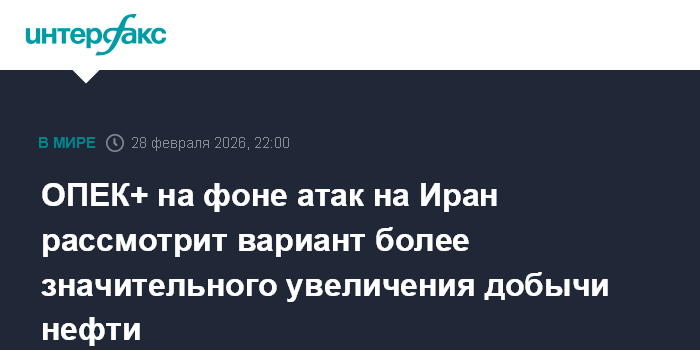 ОПЕК+ на фоне атак на Иран рассмотрит вариант более значительного увеличения добычи нефти