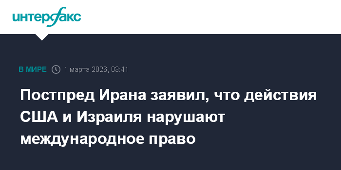 Постпред Ирана заявил, что действия США и Израиля нарушают международное право