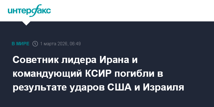 Советник лидера Ирана и командующий КСИР погибли в результате ударов США и Израиля