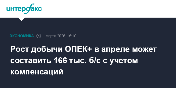 Рост добычи ОПЕК+ в апреле может составить 166 тыс. б/с с учетом компенсаций
