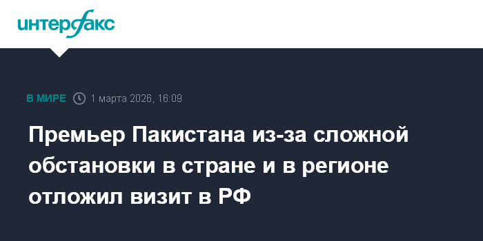 "Ввиду складывающейся региональной и внутриполитической ситуации премьер-министр после консультаций принял решение отложить визит в Россию. Новая дата будет определена после взаимных консультаций", - говорится в сообщении, распространенном пакистанским правительством в соцсети Х.
