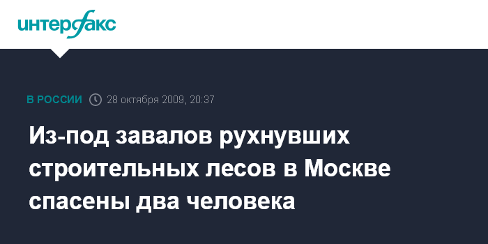 Из-под завалов рухнувших строительных лесов в Москве спасены два человека