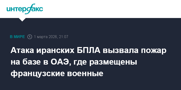 Атака иранских БПЛА вызвала пожар на базе в ОАЭ, где размещены французские военные