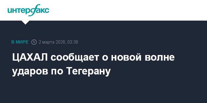 Москва. 2 марта. INTERFAX.RU - ВВС Израиля наносят новые удары по иранским объектам в центре Тегерана, сообщает ЦАХАЛ.