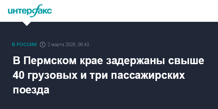 В Пермском крае задержаны свыше 40 грузовых и три пассажирских поезда