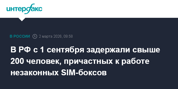 В РФ с 1 сентября задержали свыше 200 человек, причастных к работе незаконных SIM-боксов