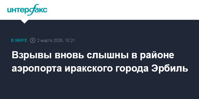 Москва. 2 марта. INTERFAX.RU - В Эрбиле, столице Иракского Курдистана слышны взрывы, иракские силы ПВО отражают атаку на аэропорт города, сообщает в понедельник "Аль-Джазира".