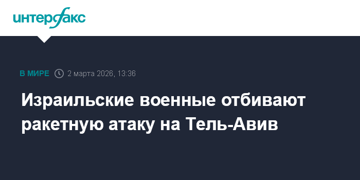 Москва. 2 марта. INTERFAX.RU - Армия обороны Израиля (ЦАХАЛ) отбивает ракеты из Ирана, сообщает The Times of Israel. В Тель-Авиве и по всему центру Израиля звучат сирены. Также ожидается прилет ракет Ирана по югу Израиля