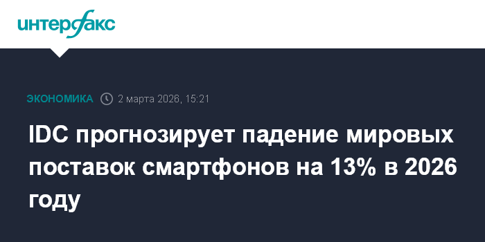 IDC прогнозирует падение мировых поставок смартфонов на 13% в 2026 году