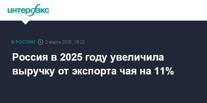 Россия в 2025 году увеличила выручку от экспорта чая на 11%