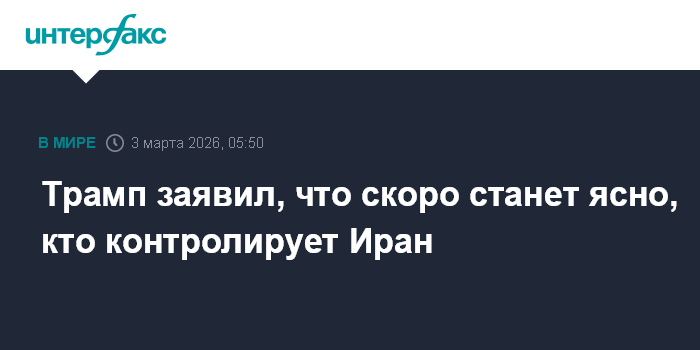Москва. 3 марта. INTERFAX.RU - Президент США Дональд Трамп заявил, что в скором времени станет понятно, кто контролирует Иран.