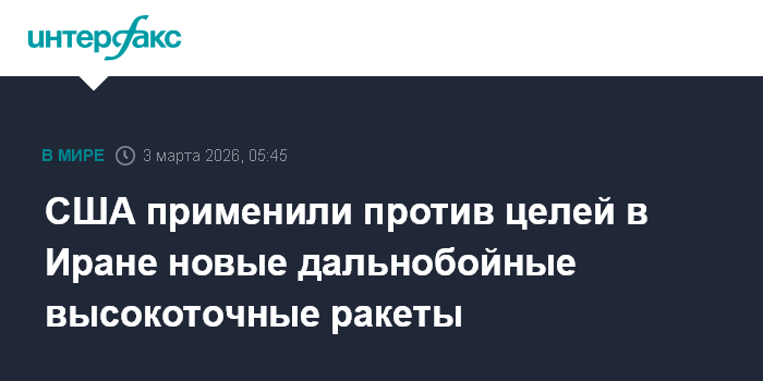 Москва. 3 марта. INTERFAX.RU - Американские войска применили против целей в Иране новые высокоточные ракеты PrSM (Precision Strike Missile) с дальностью действия 500 км, сообщило издание The War Zone, ссылаясь на опубликованное Пентагоном видео использования различных видов вооружений в ходе операции.