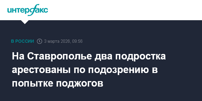 Москва. 3 марта. INTERFAX.RU - На Ставрополье два подростка арестованы поделу о попытке поджечь телекоммуникационные шкафы на вышках сотовой связи в ноябре 2025 года, сообщает пресс-служба краевого ГУ МВД.