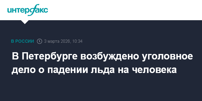 Москва. 3 марта. INTERFAX.RU - В Петербурге возбуждено уголовное дело по факту падения льда с крыши на человека, сообщило региональное управление СКР.