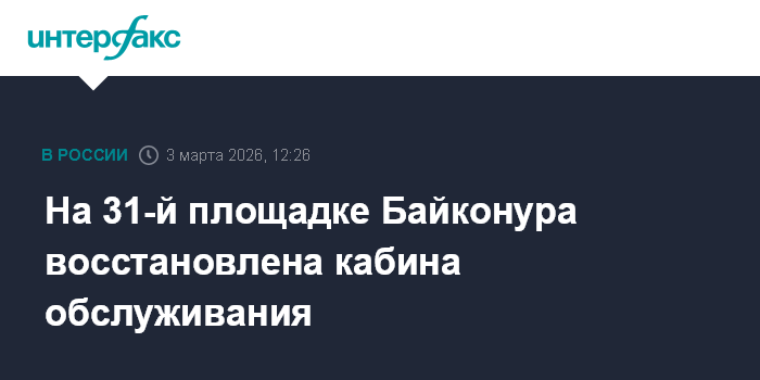 Москва. 3 марта. INTERFAX.RU - На 31-й площадке Байконура завершили монтаж кабины обслуживания, поврежденной в ходе пуска ракеты-носителя "Союз" в ноябре 2025 года, сообщили в "Роскосмосе".