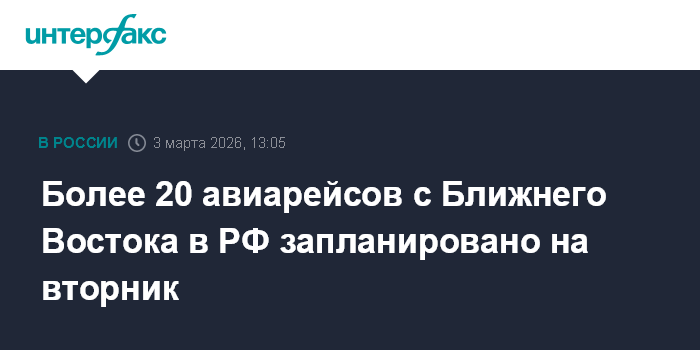 Москва. 3 марта. INTERFAX.RU - Более 20 рейсов из стран Ближнего Востока в РФ запланировали на вторник российские и зарубежные авиакомпании, сообщил Минтранс.