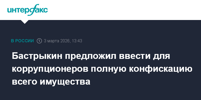"Пришло время ввести в качестве уголовного наказания для коррупционеров полную конфискацию всего нажитого имущества", - сказал он на расширенном заседании коллегии СКР.
