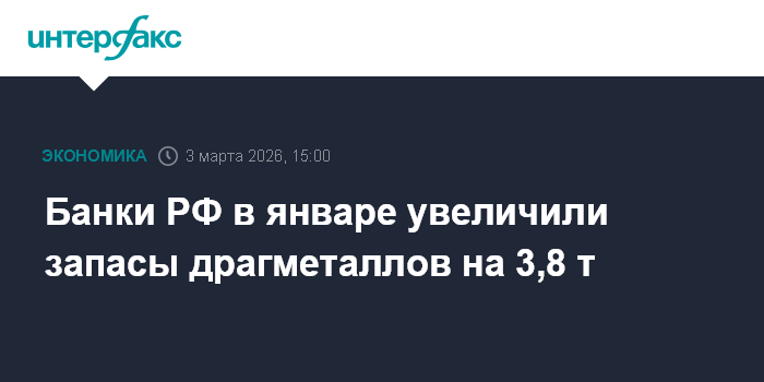 Москва. 3 марта. INTERFAX.RU - Запасы драгметаллов в банках РФ на начало февраля 2026 года оценивались в 851 млрд рублей, говорится в материалах Банка России.