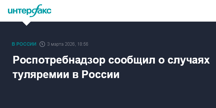 Москва. 3 марта. INTERFAX.RU - В России зарегистрированы случаи заболевания туляремией, что требует повышенного внимания, сообщили в Роспотребнадзоре.