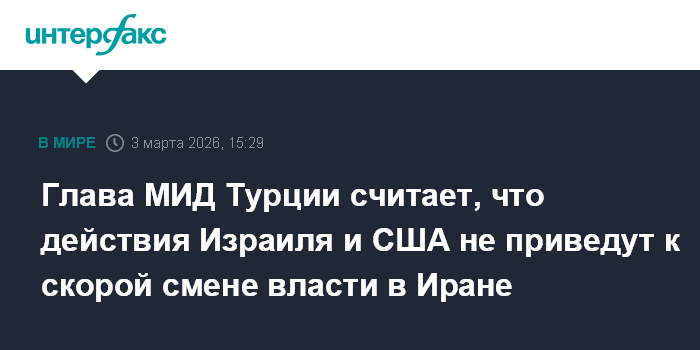 Москва. 3 марта. INTERFAX.RU - Министр иностранных дел Турции Хакан Фидан считает, что признаков скорой смены власти в Иране сейчас нет.