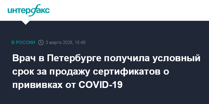 Врач в Петербурге получила условный срок за продажу сертификатов о прививках от COVID-19