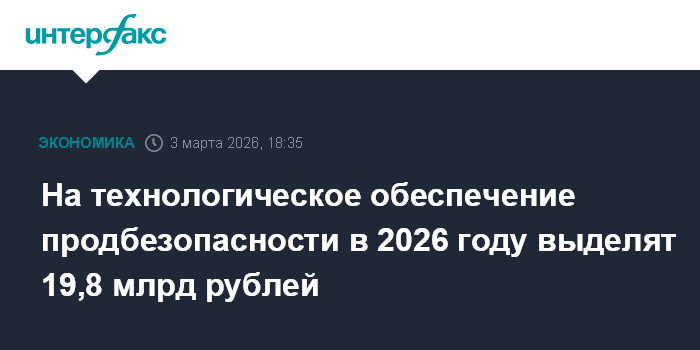На технологическое обеспечение продбезопасности в 2026 году выделят 19,8 млрд рублей