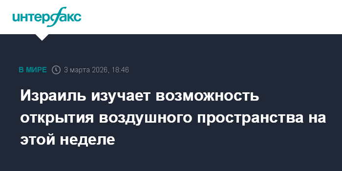 Москва. 3 марта. INTERFAX.RU - Израильская сторона рассматривает возможность постепенного открытия воздушного пространства уже на этой неделе, сообщает во вторник издание The Times of Israel.