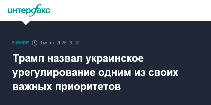 Москва. 3 марта. INTERFAX.RU - Президент США Дональд Трамп во вторник заявил, что урегулирование украинского конфликта остается одним из его важных приоритетов.