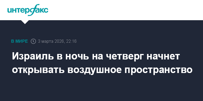 Израиль в ночь на четверг начнет открывать воздушное пространство