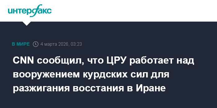 Москва. 4 марта. INTERFAX.RU - ЦРУ работает над поставкой оружия курдским силам, чтобы спровоцировать восстание в Иране, сообщает CNN со ссылкой на осведомленные источники.