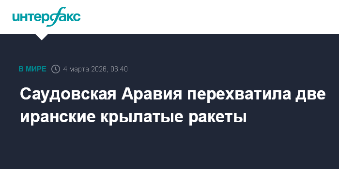 Москва. 4 марта. INTERFAX.RU - Система ПВО Саудовской Аравии в среду утром перехватила две иранские крылатые ракеты, сообщило Министерство обороны королевства.