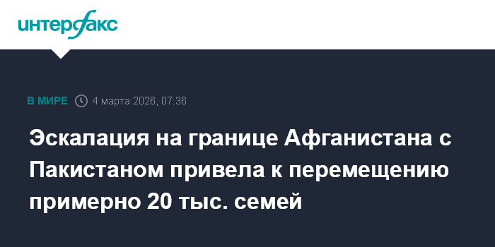 Эскалация на границе Афганистана с Пакистаном привела к перемещению примерно 20 тыс. семей
