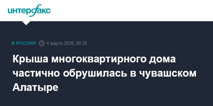 Крыша многоквартирного дома частично обрушилась в чувашском Алатыре