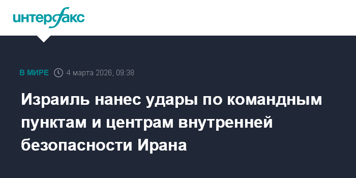 Москва. 4 марта. INTERFAX.RU - Армия обороны Израиля (ЦАХАЛ) нанесла удары по нескольким командным центрам и центрам внутренней безопасности Ирана, говорится в официальном сообщении армии.