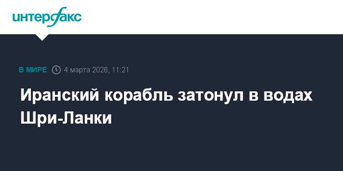 Москва. 4 марта. INTERFAX.RU - Корабль ВМС Ирана IRIS Dena затонул в территориальных водах Шри-Ланки, 30 моряков эвакуированы, сообщает в среду Asia Net News.