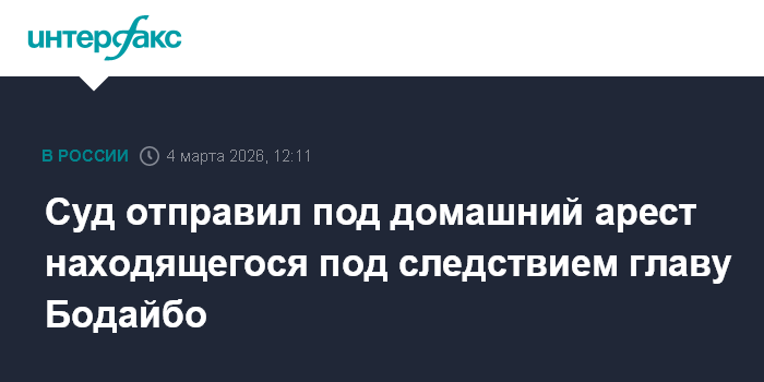 Москва. 4 марта. INTERFAX.RU - Суд в Иркутской области отправил под домашний арест главу города Бодайбо, обвиняемого в превышении полномочий, сообщает прокуратура региона в среду.