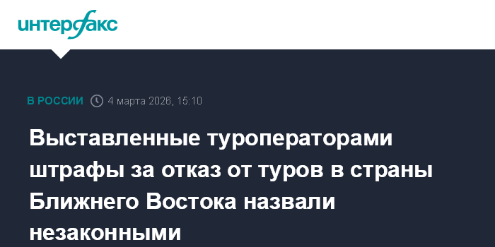 Выставленные туроператорами штрафы за отказ от туров в страны Ближнего Востока назвали незаконными