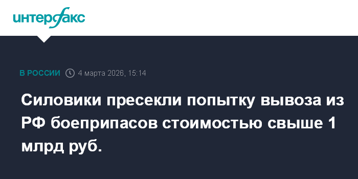 Силовики пресекли попытку вывоза из РФ боеприпасов стоимостью свыше 1 млрд руб.