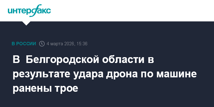 Москва. 4 марта. INTERFAX.RU - В хуторе Григорьевка Волоконовского округа дрон атаковал автомобиль, пострадали трое, сообщил губернатор Белгородской области Вячеслав Гладков.