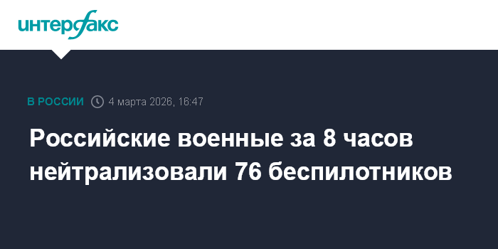 Российские военные за 8 часов нейтрализовали 76 беспилотников