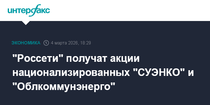 "Россети" получат акции национализированных "СУЭНКО" и "Облкоммунэнерго"