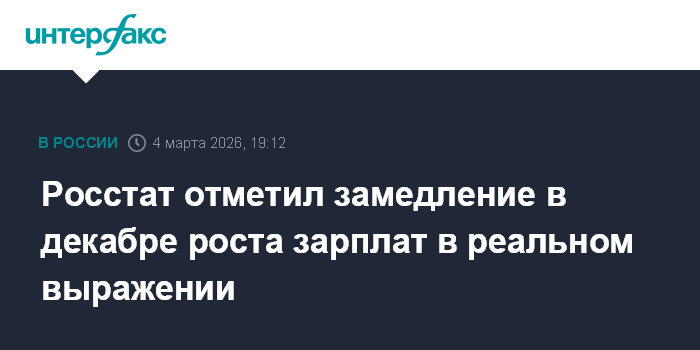 Москва. 4 марта. INTERFAX.RU - В России в декабре 2025 года рост реального размера (с поправкой на инфляцию) заработной платы в годовом выражении составил 2,4% после повышения на 5,8% в ноябре, на 6,1% в октябре, на 4,7% в сентябре, на 3,8% в августе, на 6,6% в июле, на 5,1% в июне, на 4,2% в мае, на 4,6% в апреле, на 0,1% в марте, на 3,2% в феврале и на 6,5% в январе, сообщил Росстат.