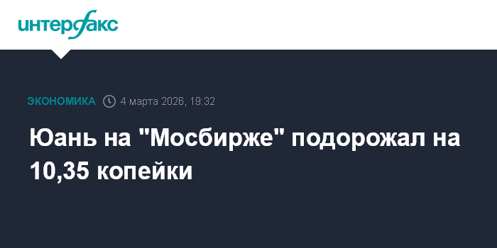 Москва. 4 марта. INTERFAX.RU - На волатильных торгах среды на "Московской бирже" рубль подешевел к юаню на решении Минфина не проводить операций по покупке/продаже иностранной валюты и золота на внутреннем валютном рынке в рамках бюджетного правила в марте 2026 года.