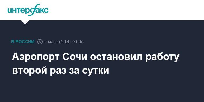 Москва. 4 марта. INTERFAX.RU - Для аэропорта Сочи второй раз за день ввели запрет на на прием и выпуск самолетов, сообщила Росавиация.