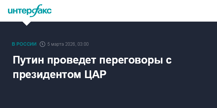 Москва. 5 марта. INTERFAX.RU - Президент РФ Владимир Путин в четверг проведет переговоры с президентом Центральноафриканской Республики Фостеном Арканжем Туадерой, который находится в России с рабочим визитом.