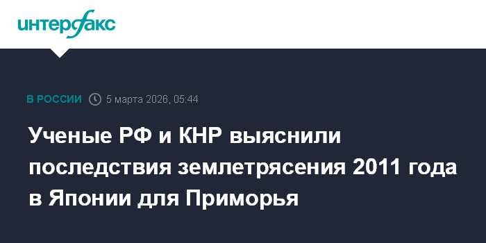 Ученые РФ и КНР выяснили последствия землетрясения 2011 года в Японии для Приморья